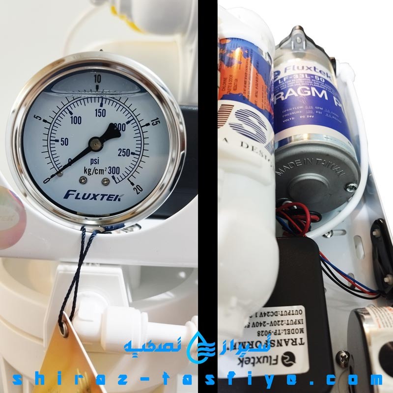 از جمله دستگاهایی که کاملا در کشور تایوان و در کمپانی FLUXTEK ساخته میشود و بصورت پک شده و در کارتن وارد ایران میشود و در قطعات و فیلترها و مونتاژ دستگاه هیچ دخل و تصرفی در کشور ما انجام نمی شود . کمپانی FLUXTEK در صنعت تصفیه آب دارای اسم خوش نامی بوده و همواره در تولیدات این شرکت کیفیت حرف اول را میزند . این شرکت یا در واقع کمپانی ( به علت اینکه کارخانه تولیدی است ) در بخش های زیادی از دستگاه های تصفیه آب نظیر فیلتر ، پمپ ، شیلنگ و اتصالات و ... ، تولیدات متنوعی دارد و تمام قطعات این دستگاه تصفیه آب نیز (بجز مخزن ) ساخت کمپانی FLUXTEK است . مخزن نیز از کمپانی معروف تانک پک TANKPAC تایوان است که با کیفیت ترین نوع مخزن را در جهان تولید میکند . همچنین کلیه فیلترهای این دستگاه ساخت کمپانی FLUXTEK بوده که از کیفیت بسیار بالایی برخوردار هستند . در این دستگاه از شیر BACK WASH برای طول عمر بیشتر فیلترها و همچنین سنسور نشتی آب برای قطع جریان آب در زمان نشتی استفاده شده است . همچنین دو عدد LED رنگی آبی و قرمز روی دستگاه قرار دارد که عملکرد دستگاه را نشان میدهد . این دستگاه از معدود دستگاه های تصفیه آب در کشور ایران است که کاملا وارداتی است و میتوانید با استعلام از کمپانی اصلی ، صحت این موضوع را به آسانی متوجه شوید . در تک تک اجزاء و قسمتهای دستگاه FLUXTEK ، کیفیت را میتوان دید و هیچ کم کاری در آن وجود ندارد . تمام فیلترها دارای بالاترین استاندارد هستند و از مواد کاملا گیاهی و مرغوب ساخته شده اند . یک مدل دیگر دستگاه از برند فلاکستک FLUXTEK نیز وجود دارد که مجهز به فیلتر آنتی باکتریال و هیدروژنه قلیایی می باشد که می توان به جرات آنرا بهترین دستگاه در بازار کشور معرفی کرد . نام این مدل FLUXTEK HD می باشد که پیشنهاد میشود آنرا مورد بررسی قرار دهید .